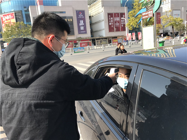 当天上午,电力工程系党总支组织员余森海与数名学生党员前往共建社区,为社区各岗亭安保人员送去数百副防护口罩及若干瓶抑菌免洗凝露,并一同与安保人员为小区进出人员测量体温,为广场未佩戴口罩人员送去防护口罩。
