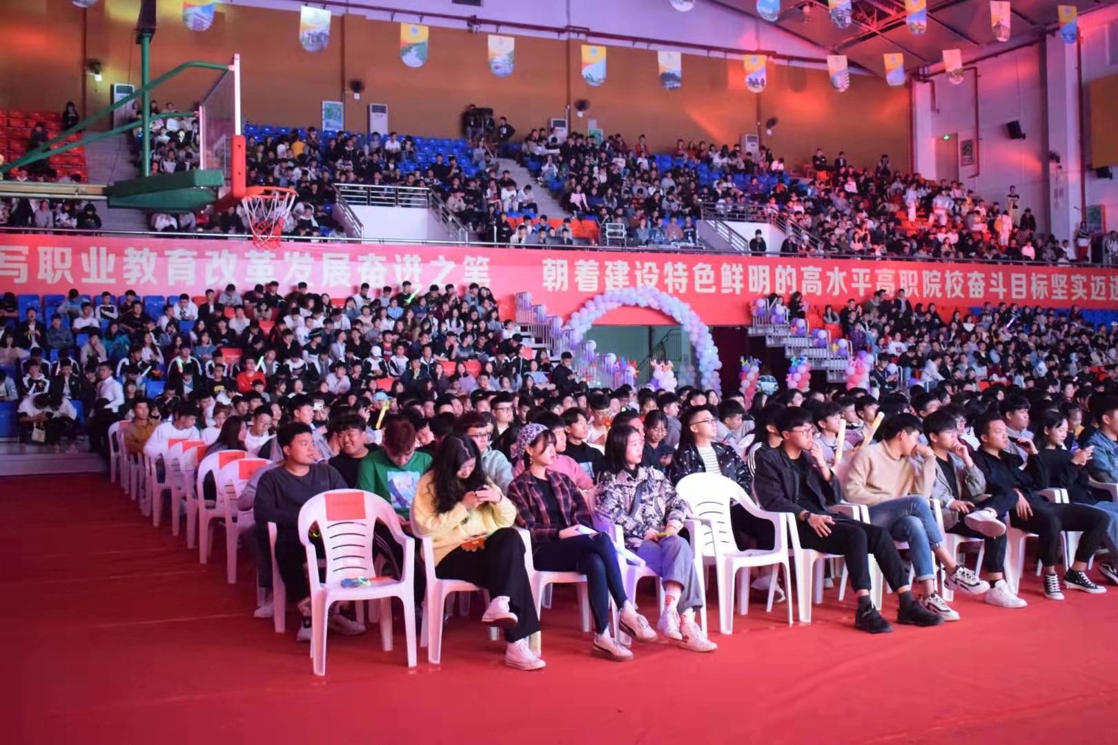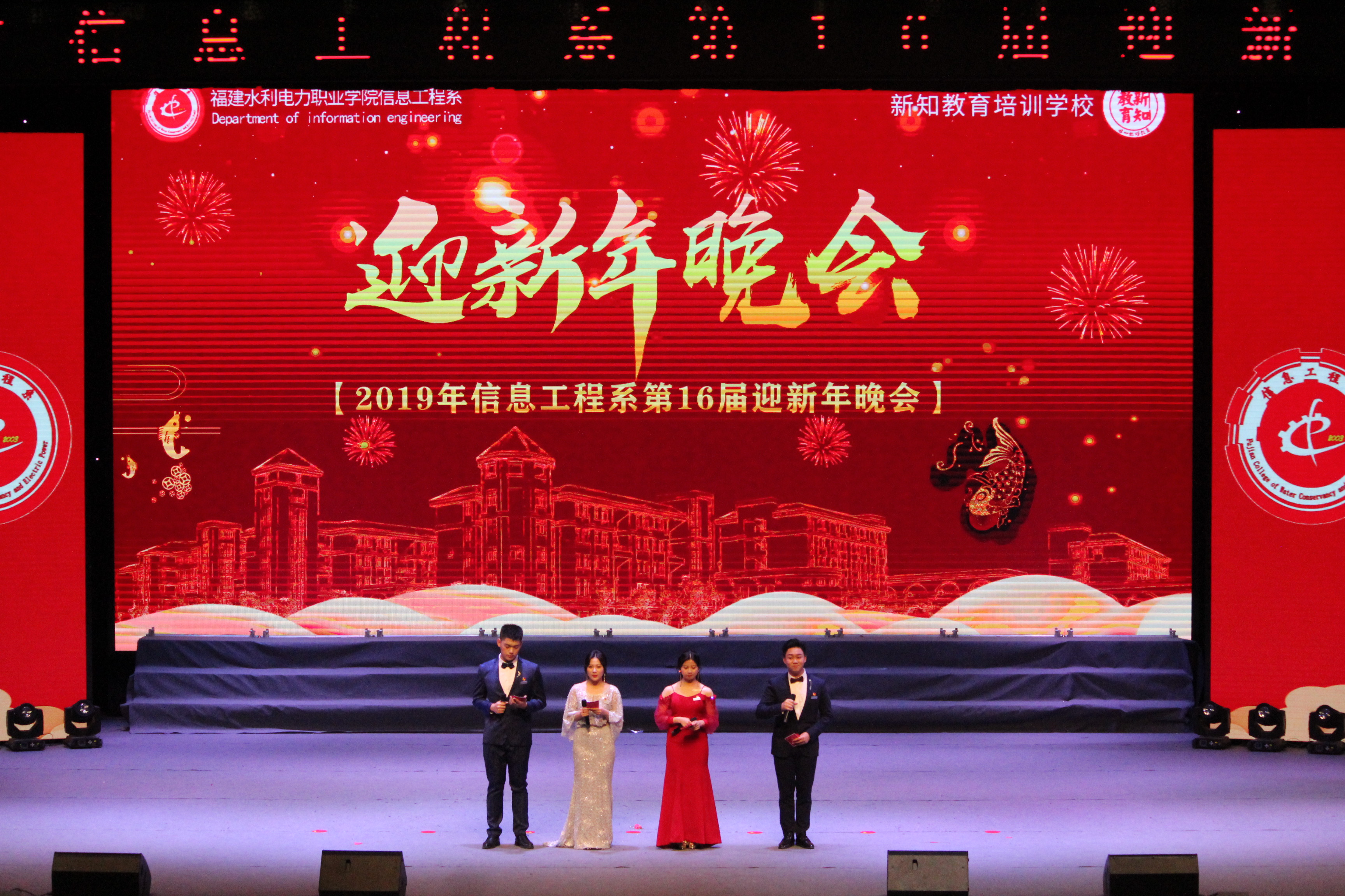 12月18日晚,由学院团委主办、信息工程系承办的第十六届迎新年晚会在路港体育馆精彩上演。学生工作处负责人陈燕晖、信息工程系党政班子、各系部党团总支负责人及1500余名同学现场观看了晚会。