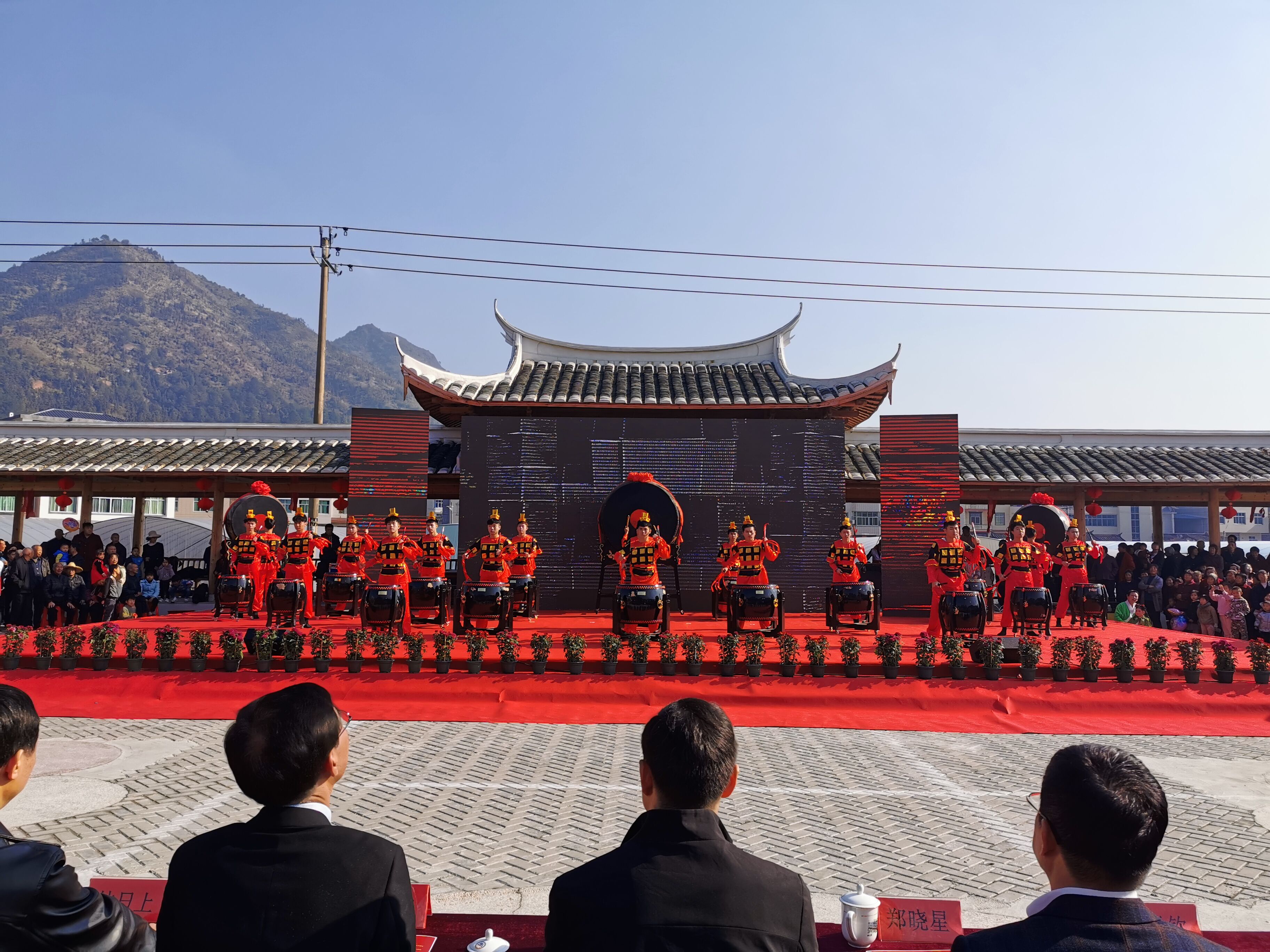 早上7点出发,大伙迎着阵阵寒风,来到了槐南镇安贞堡游客服务中心进行化妆、踩点、彩排等准备工作。活动启动后,我院安贞旌鼓作为民俗表演的第一个节目隆重登场,为来自各地的领导嘉宾献上了极具地方特色的民俗表演,表演现场热闹非凡,人头攒动。同学们的精彩表演,鼓声响彻全场,也引来观众阵阵掌声。