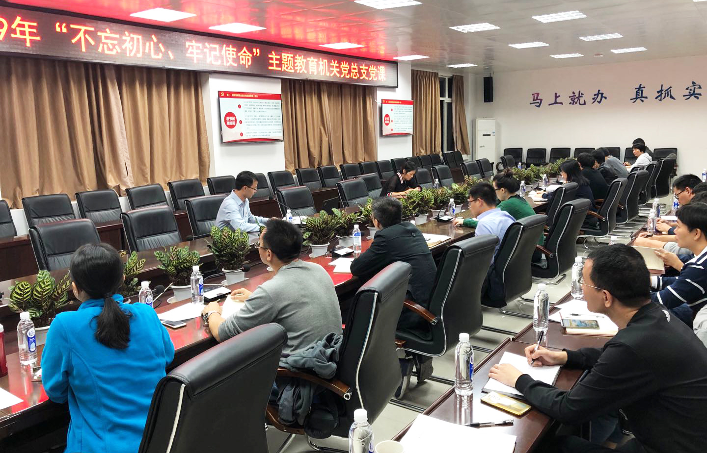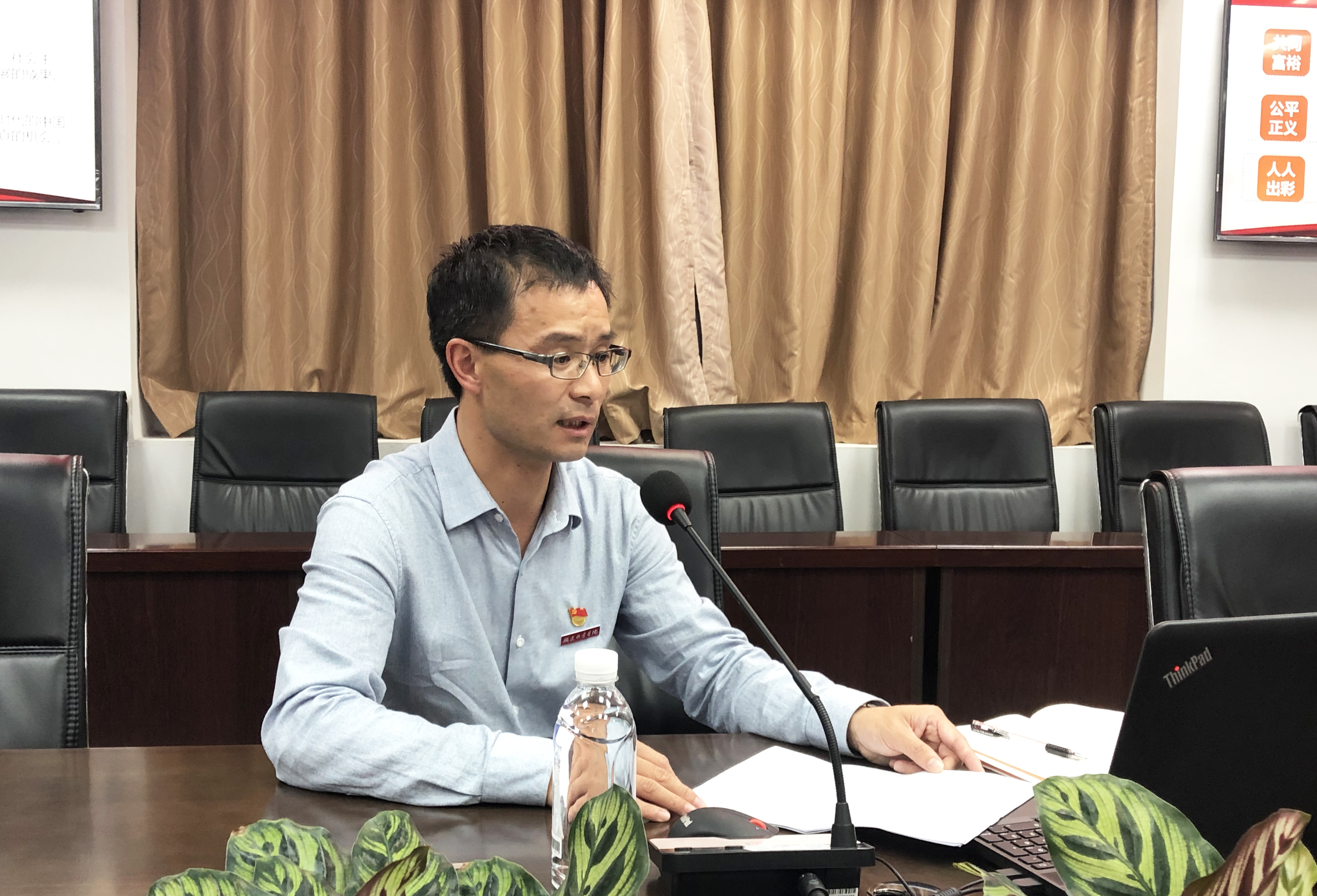 11月12日晚,机关党总支书记包晓晖在禹兴园1-506会议室以“贯彻‘五大发展理念’,提升教育教学工作的水平与质量”为主题开设“不忘初心、牢记使命”主题教育专题党课。学院党委副书记、学院主题教育第一巡回指导小组组长黄瑞梅出席,机关党总支委员,机关各支部书记、支委及机关第四支部全体党员到场聆听。