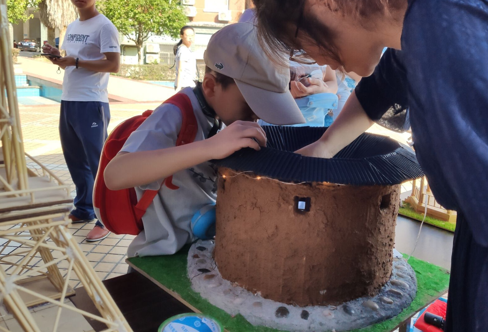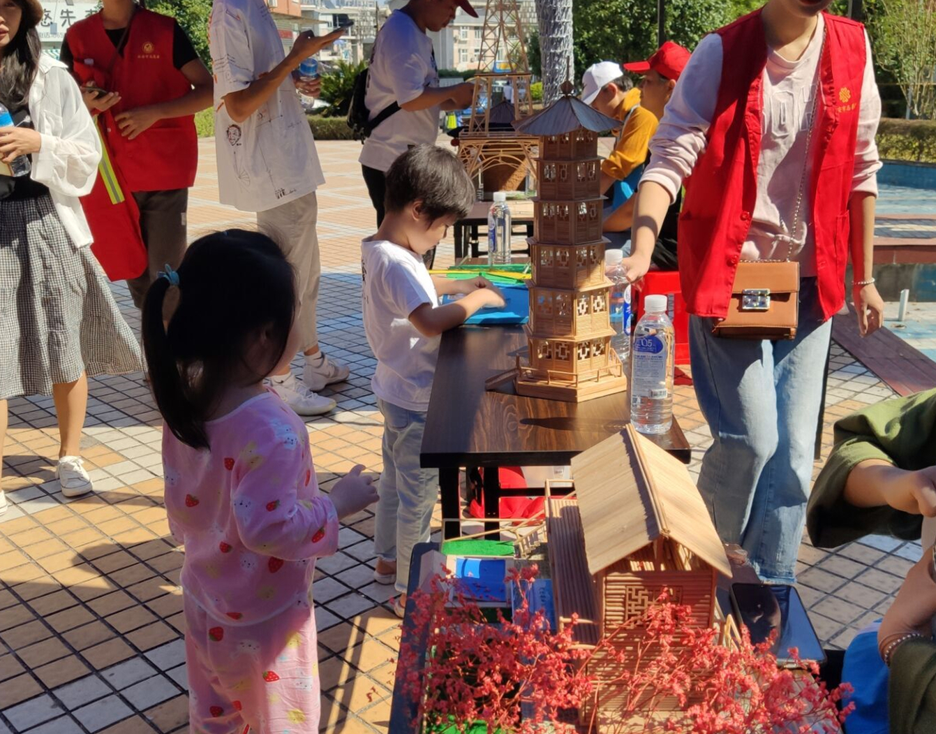 活动展出了建筑工程系建筑模型比赛中的获奖作品:土楼模型、亭台楼榭模型、广州“小蛮腰”电视塔、法国埃菲尔铁塔......一件件精美绝伦的模型、结合学生志愿者的生动讲解,瞬间吸引了居民们的目光,他们不由得表示:“水院学子能够学以致用,充分弘扬了工匠精神、传承了鲁班文化。”