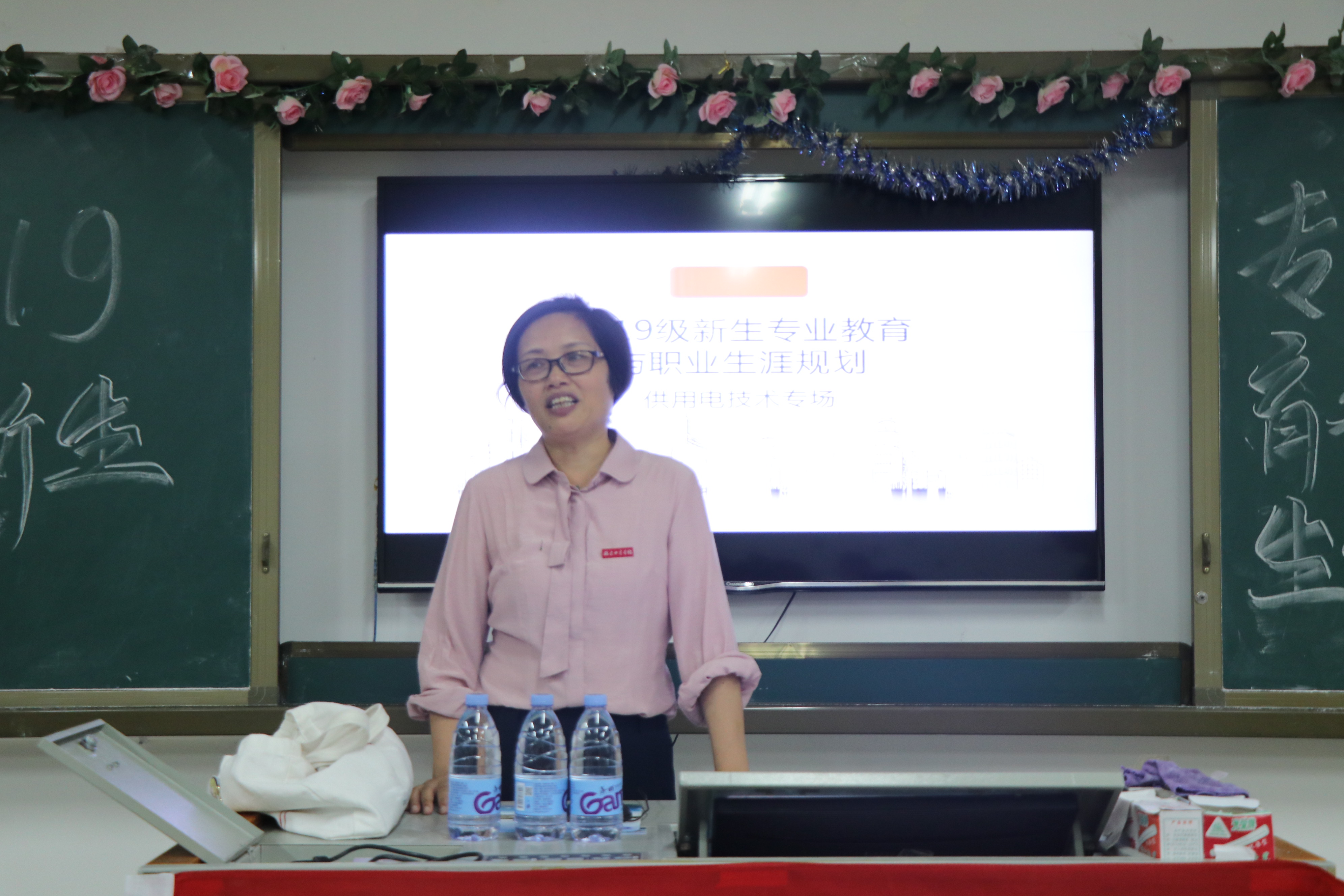 学院党委副书记黄瑞梅老师结合当前的电力行业的发展现状,为供用电1931班的同学们细致地介绍了供用电技术专业的从事岗位与工作职责,深刻地剖析了本专业开设的课程设置、教学现状、发展前景及就业情况等相关专业信息。她期望同学们能认真思考,度过一个有目标、有理想、有信念、有规律的大学生活。