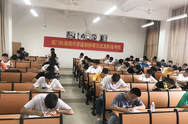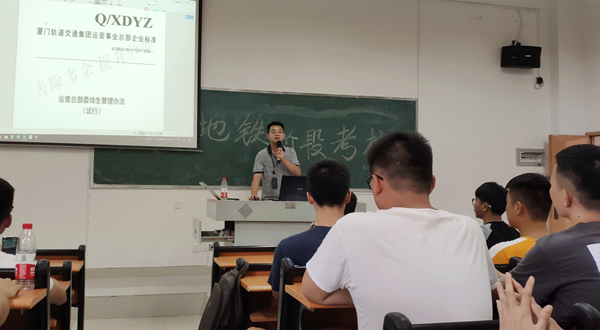 厦门地铁工程师周守勇为订单班学生做了题为“企业宣贯”的讲座,介绍了运营事业总部企业标准和订单班培养在校事宜等,同时开展了“接触网”的专业课程。全体订单班学生全神贯注听讲,并认真做好笔记。次日,厦门地铁对订单班学生进行了阶段考核,测试采用闭卷笔试的方式,主要考核学生在校期间的专业知识。