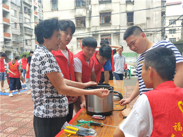 活动得到了社区群众的广泛称赞与认可,一开始便吸引了众多群众,纷纷进行咨询、交流。一些熟悉学院的社区小朋友和老年朋友对志愿者们的到来感到非常高兴,主动上前搭话、咨询。活动过程中,志愿者们一边娴熟地为居民维修电器,一边主动地与大家沟通交流,耐心地答疑解惑,讲解小家电的使用和保养方法。为更好地服务群众,志愿者们还留下了自己的联系方式。另一旁,志愿者们向大家们演示“心肺复苏”正确姿势,师生们热情周到的服务态度和专业的知识、技能赢得了社区群众的高度评价。