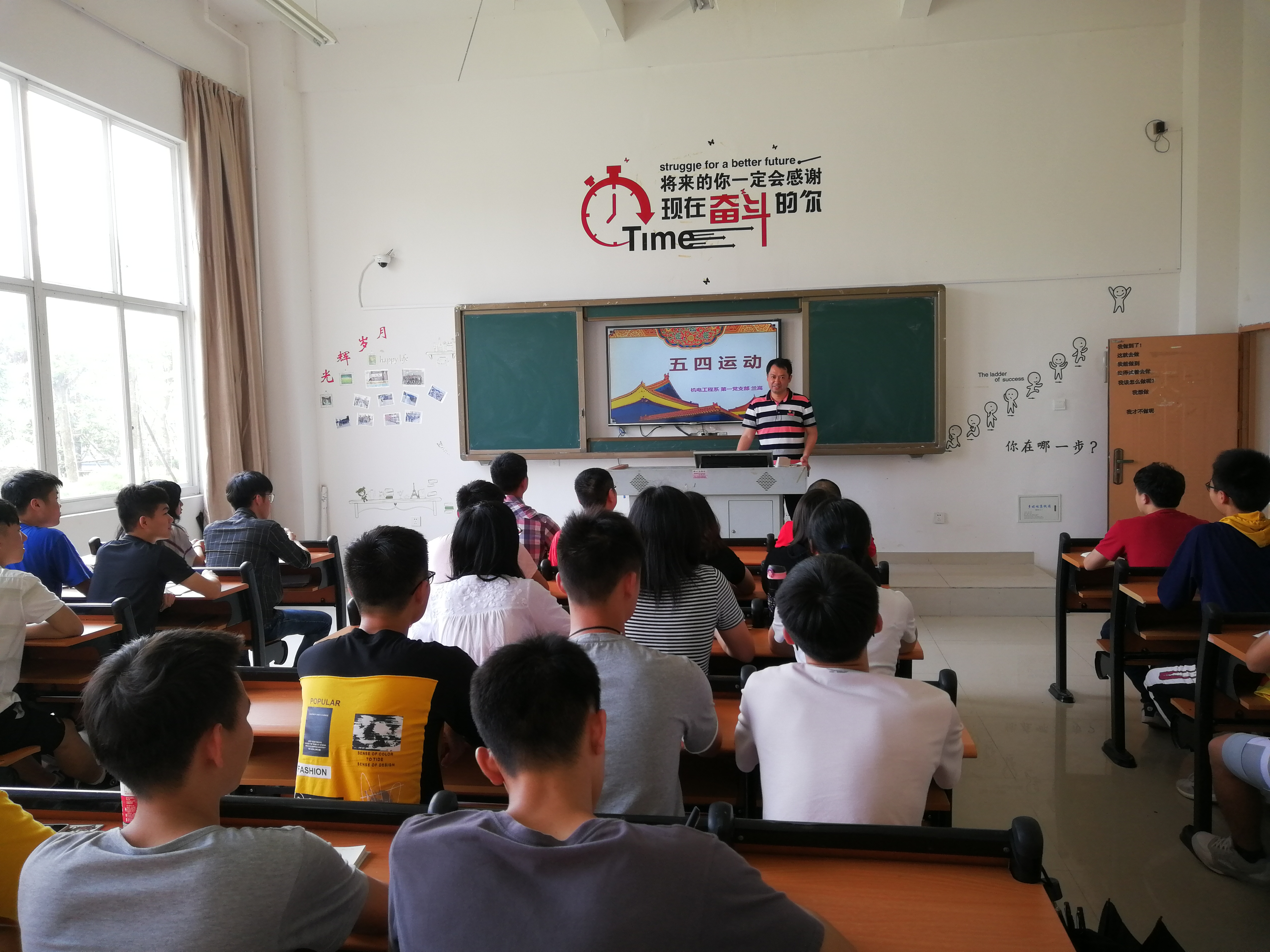 为弘扬五四精神,纪念五四运动100周年,机电工程系第一党支部于5月14日下午在禹兴园4-105教室开展“缅怀五四先驱,实现伟大复兴梦”主题党课学习教育活动。党课由支部书记兰嵩老师主讲,支部全体师生党员、预备党员和积极分子参加了学习。