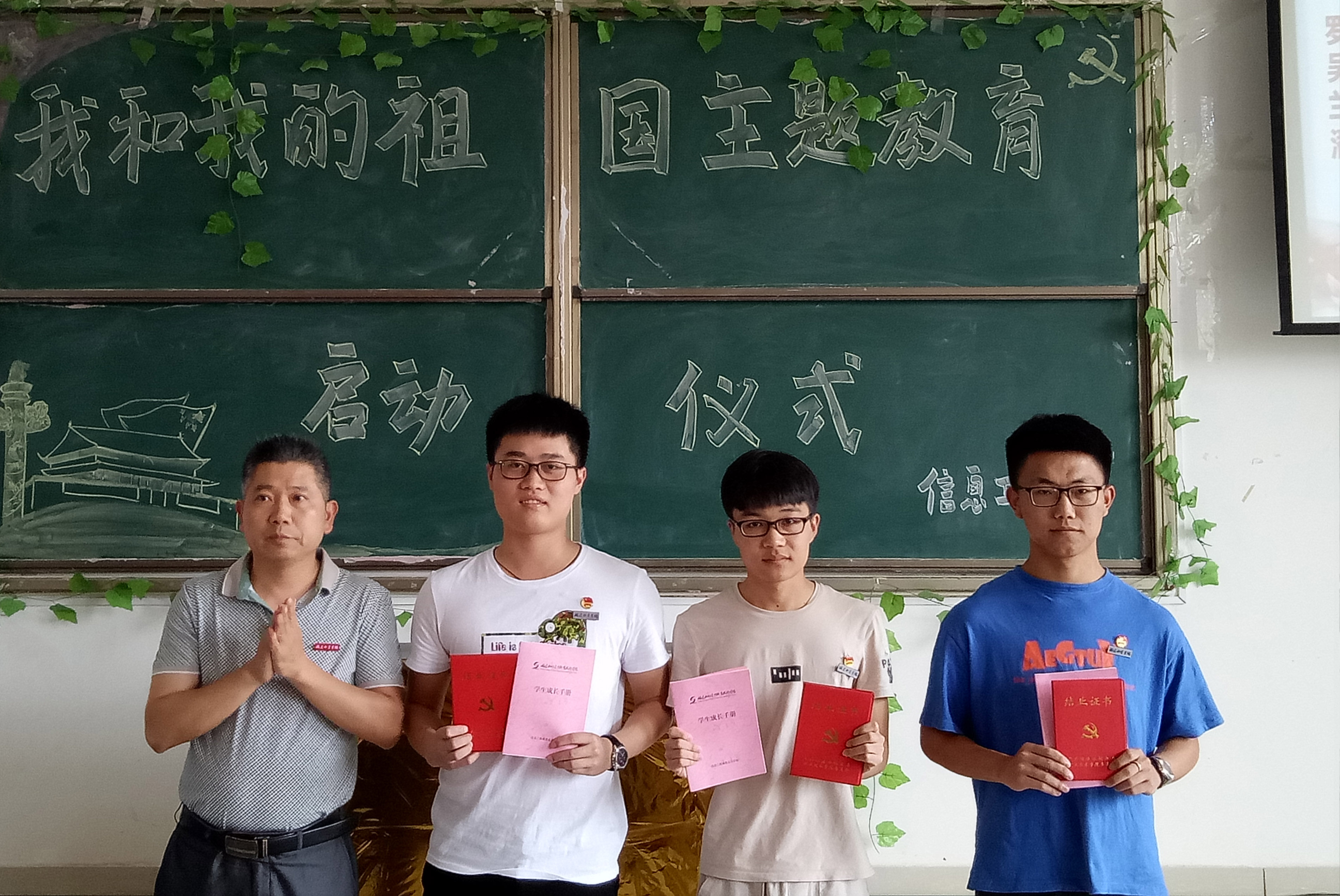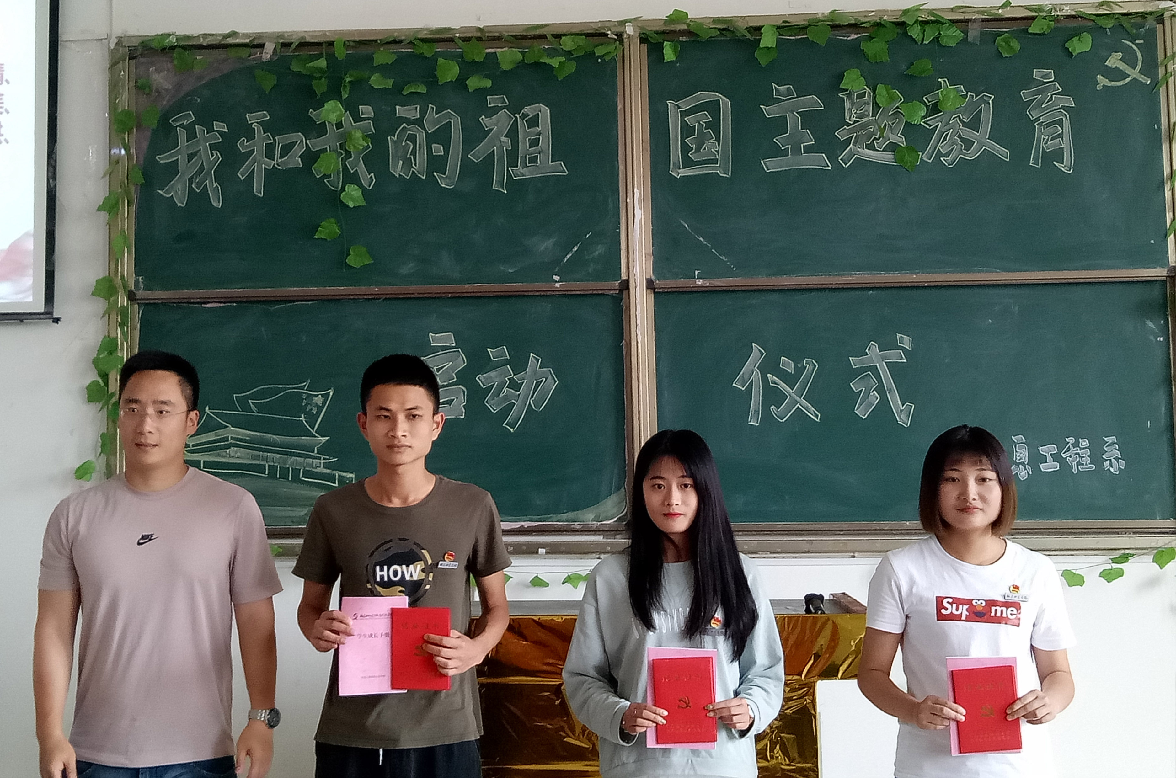 叶纯敏首先宣布了主题教育活动方案,并宣读了2019年信息工程系党总支关于对各党支部积极分子的批复及第一批拟发展对象人员名单。接着,各支部书记为本支部入党积极分子颁发《学生成长手册》,朱庆喜和文宜进为2019年第一批发展对象颁发《学生成长手册》和党课培训结业证书。