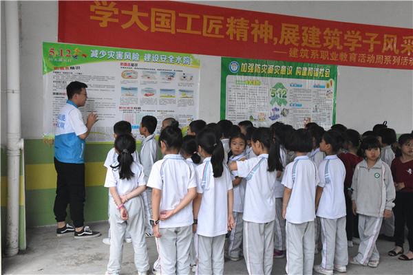 为弘扬工匠精神,展现职教风采,5月22日,建筑工程系师生志愿者走进南门小学,开展建筑模型展览和防灾减灾知识宣传。南门小学1000多名师生参与了此次体验活动。