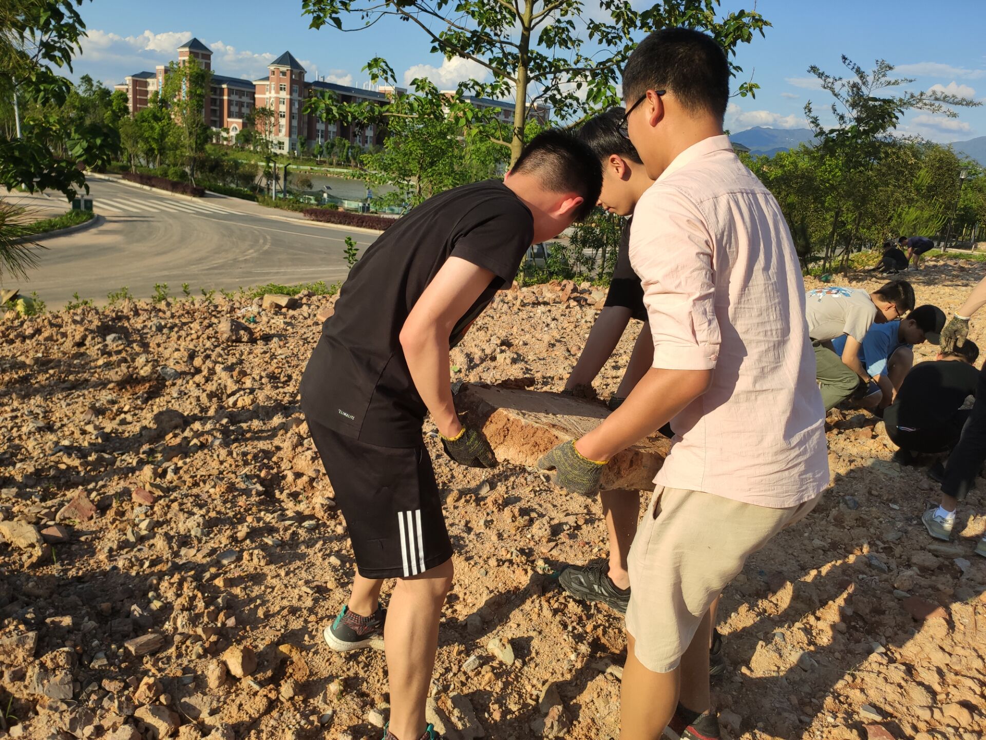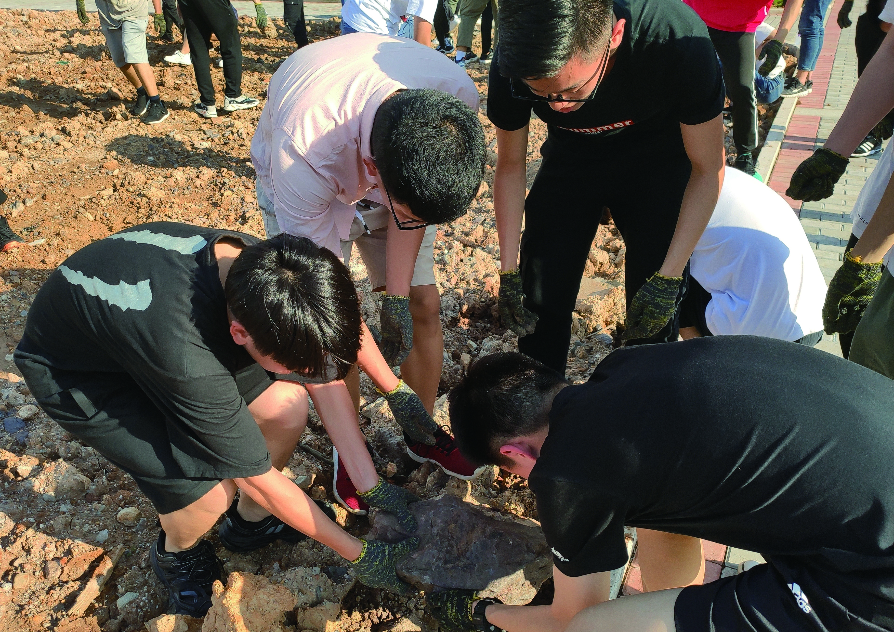 活动持续了近两个半小时,志愿者们发扬不怕苦、不怕累的精神,集中清除了建筑工程实训馆空地上的每一块石头。大家热情洋溢、干劲十足、分工明确,三五成组相互配合,充分发扬不怕脏、不怕累的团结协作精神,为下一步绿化校园做好前期准备。