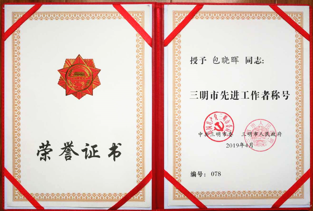 4月29日,中共三明市委、三明市人民政府表彰了市劳动模范和先进工作者共计100人,我院包晓晖老师被授予“三明市先进工作者”荣誉称号。