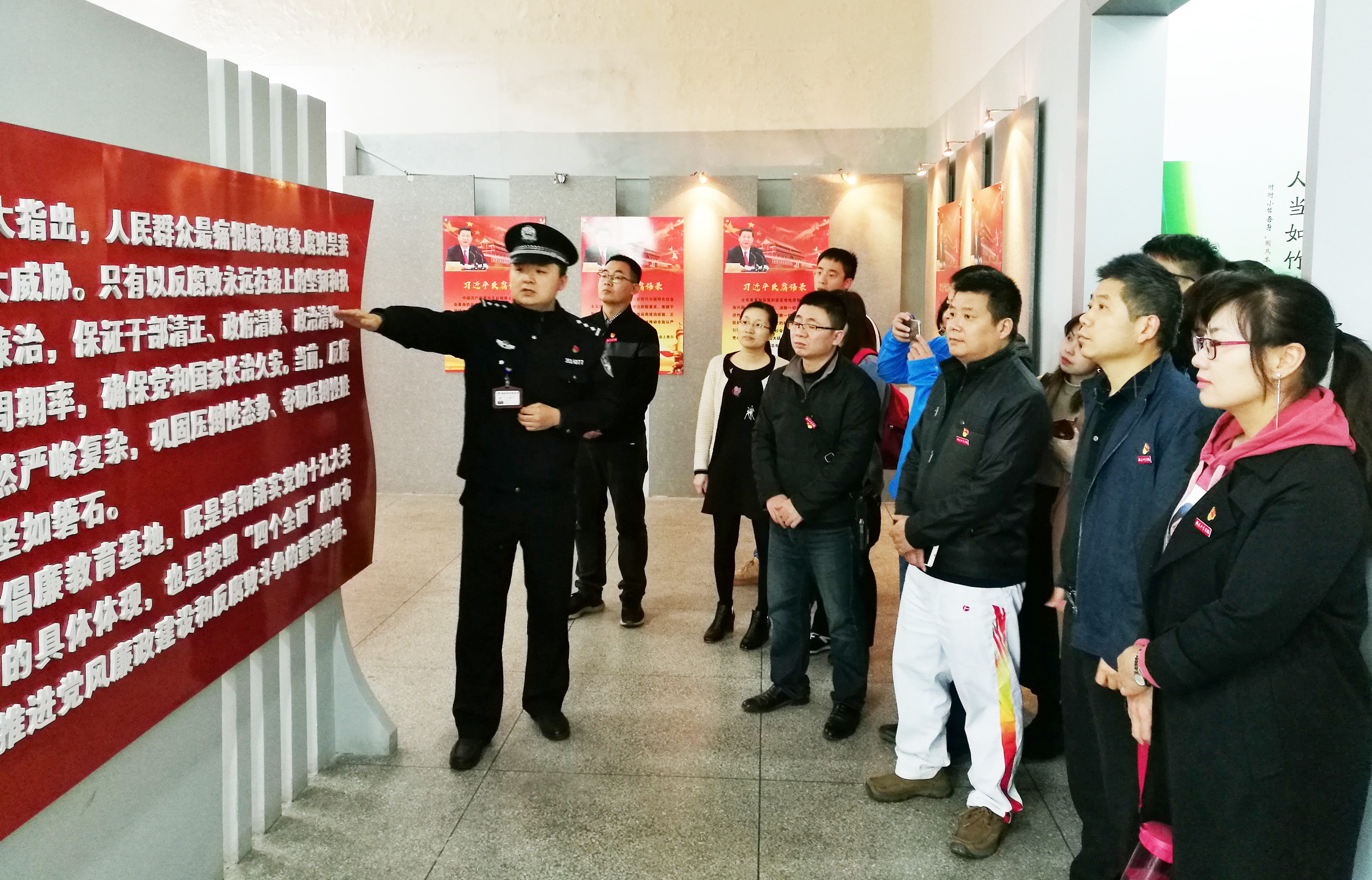 在反腐倡廉警示教育基地讲解员的引导和讲解下,教职工党员分别参观学习了国家历年反腐倡廉宣传专栏、党的十九大以后党纪国法的各项新规,同时还聆听了服刑人员的现身说法。当听到服刑人员讲到“如何步入犯罪的深渊,最终连累了家人,自毁人生”时,在场的教职工党员都深刻感悟到身陷囹圄的痛苦和违反党纪国法对国家、社会、家庭造成的沉重伤害。