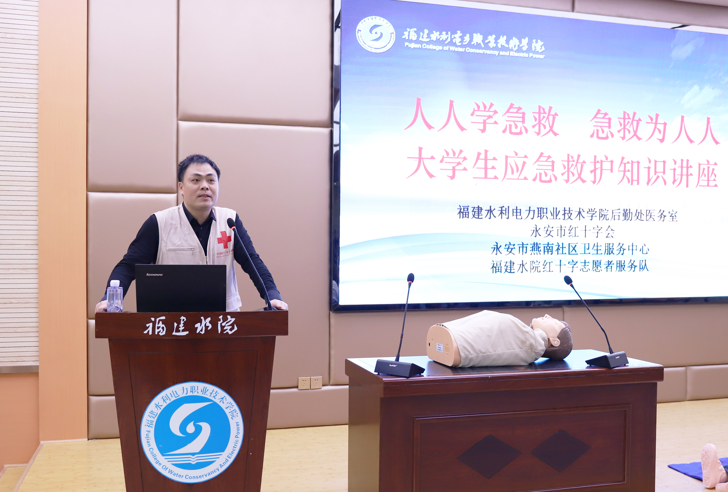 为传播“人人学急救,急救为人人”的理念,普及提高应急救护知识和能力。4月2日下午,后勤处与永安市红十字会、永安市燕南社区卫生服务中心在我院联合举办大学生应急救护知识讲座,各班180多名学生代表参加学习。