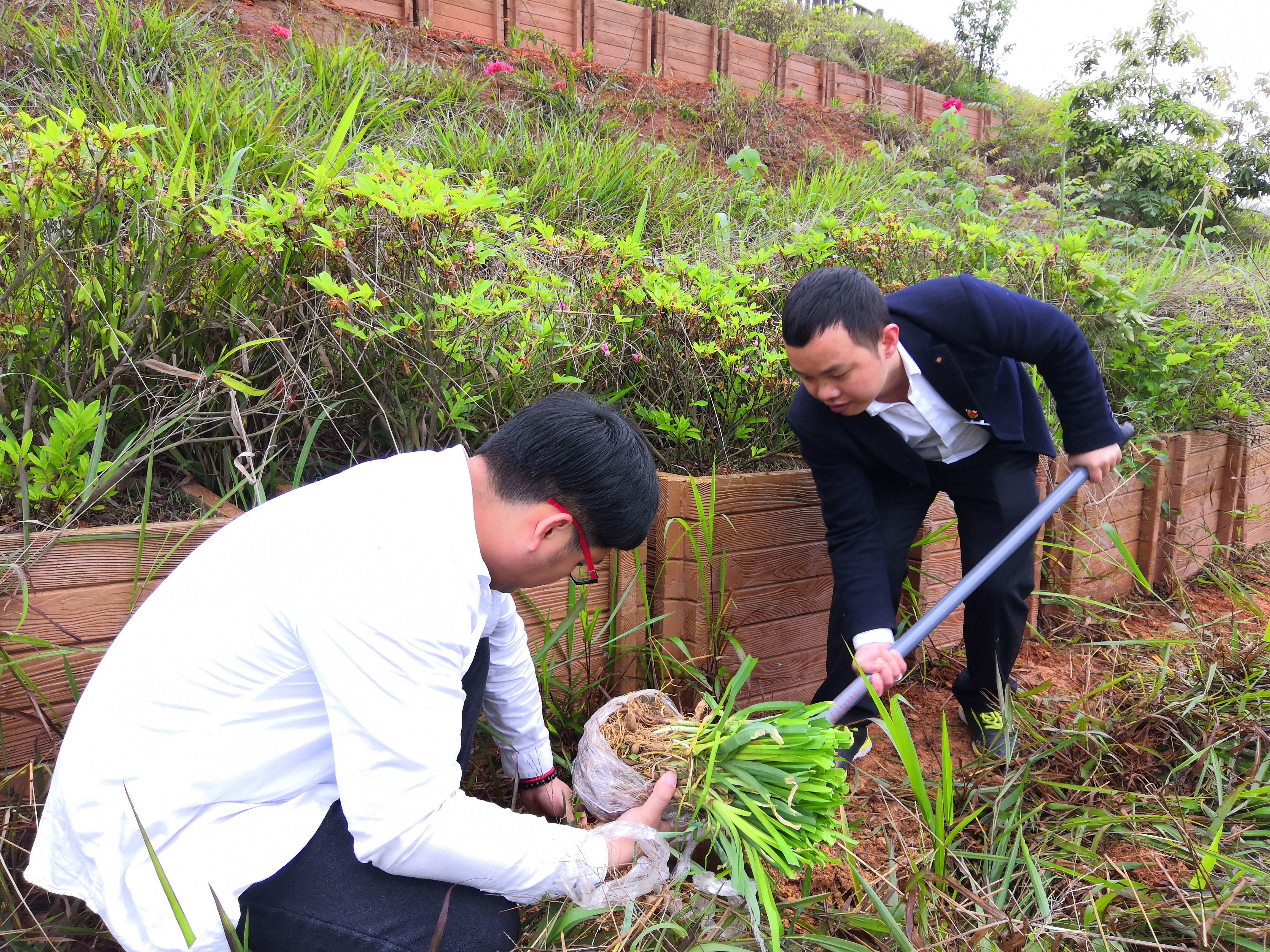 当天下午,15名师生党员志愿者来到水土保持实训场。和着微微细雨,大家撸起袖子,精心栽植每一颗小树苗,锄草、挖坑、扶苗、培土、踩实,每一道工序都做得认真细致、配合默契。经过两个多小时的努力,60棵绣球无尽夏树苗、400棵萱草树苗卓然而立,为水土保持实训场注入了新的活力与生机。
