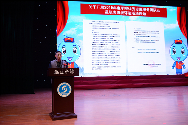 启动仪式上,青年志愿者代表蔡小杰同学表达了自己参加青年志愿服务工作的收获和感动,并带领全体志愿者进行宣誓。学生工作处(团委)负责人陈燕晖宣读了《关于开展2019年度学院优秀志愿服务团队及星级志愿者评选活动的通知》,鼓励和表彰在志愿服务中成绩突出的青年志愿者,引导更多同学参与志愿服务。