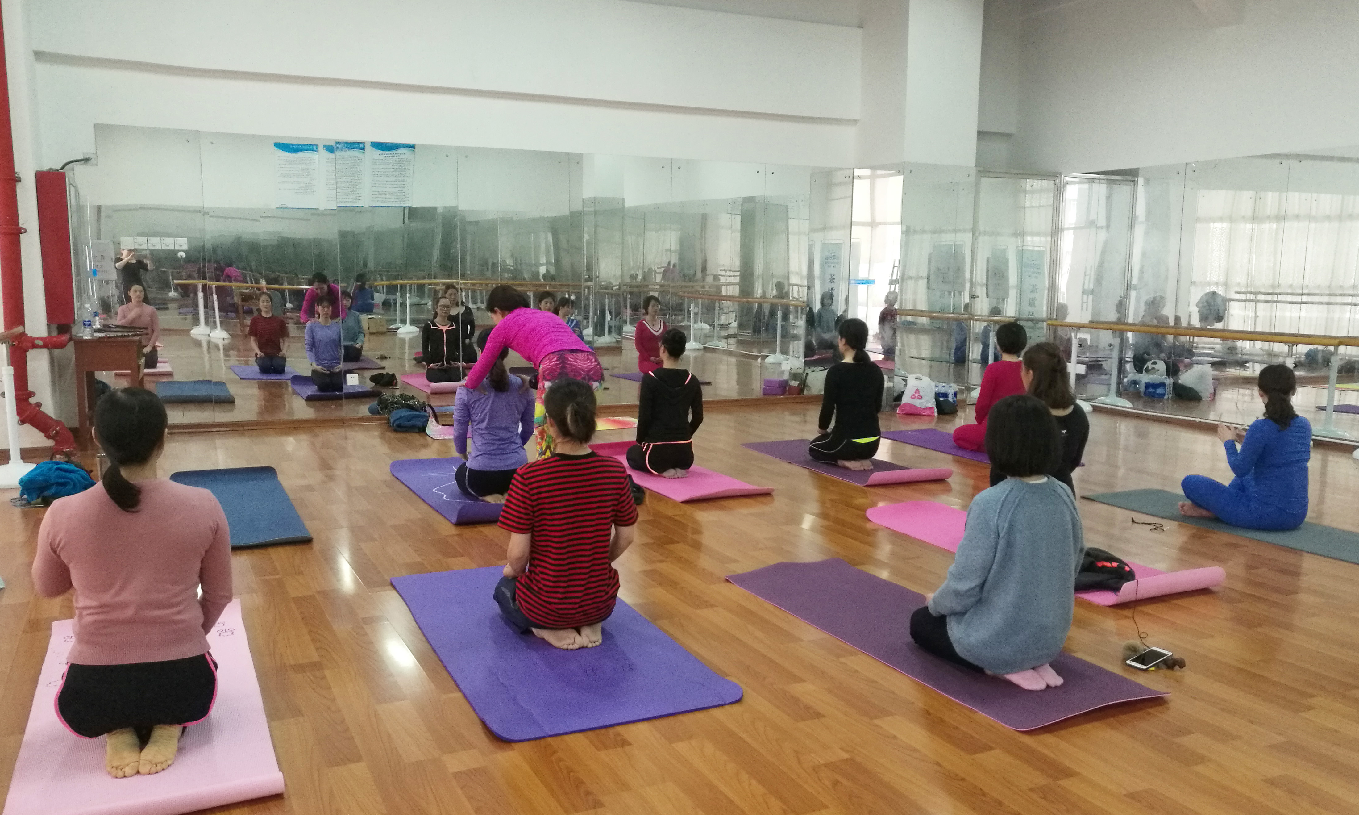 在舒缓的音乐中,女老师们在专业瑜伽教练的指导下,调整呼吸,感受瑜伽的安宁、平和与愉悦,她们柔美的动作,成为了一道亮丽的风景。