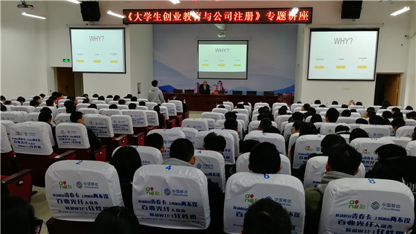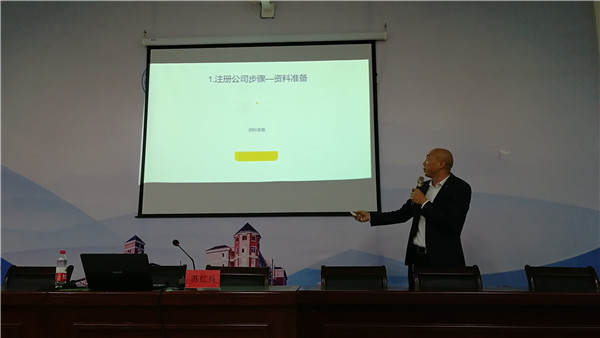 讲座伊始,苏红兵先生结合自身经历,从大学生为什么创业问题入手,对大学生创业所需要具备的创业意识、创业精神和创业前的准备做了详细的介绍,提出了先分析后定夺、先准备后梦想、先厚积后薄发、先认知后选择的观点。随后,通过讲解大学生创业成功案例,告诉同学们在创业的过程中要因势利导、顺势而为、适应时代,大学时期是创新创业最好的起步阶段,大学生有时间、有精力、有伙伴,要敢于创业、敢于挑战、敢于拼搏。最后,苏红兵先生还特别针对大学生创业注册公司的具体流程做了详细的讲解。