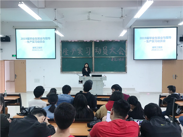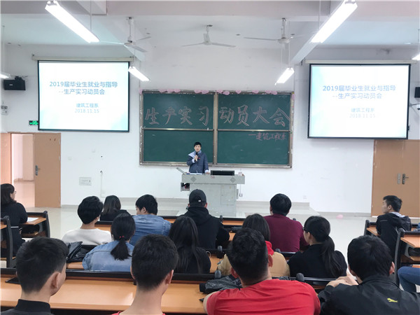 生产实习是学生以技术人员助手的身份参加现场施工和管理工作,在实习中深入实际,完成实习指导人所布置的各项工作任务,培养和锻炼独立分析问题和解决问题的能力。此次动员大会,不仅使同学们认识了实习的意义,更使同学们了解了实习过程中应遵守的纪律与注意事项,有利于实习工作的顺利进行,为实习工作拉开良好序幕。