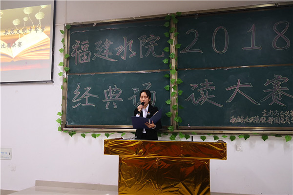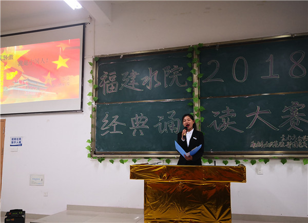 本次比赛系第十四届学院技能比武大赛的赛项之一,共有53名同学报名参加,经过前期的两次预赛,有9名选手进入决赛。参赛篇目涵盖诗词、中华美文、经典篇章,以诵读为主,表演形式不拘一格。9位参赛选手以饱满昂扬的精神状态,声情并茂地诵读着歌颂祖国、歌颂中华民族的经典名篇作品,或激昂高亢,或深情款款,或抑扬顿挫。选手们精彩的表现不时引发观众们的阵阵掌声。最后,水监1731班同学陈泓博得到在场评委的一致认可,荣获一等奖。