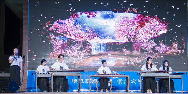 为深入学习贯彻党的十九大精神,传承和弘扬中华优秀传统文化,充分展现优秀传统文化的魅力和时代风采,值此国庆之际,9月28日晚,由我院与永安市文化馆共同主办、机电工程系承办的“弦音逐梦 国庆之夜”闽派古琴专场演奏会在我院综合楼小舞台举行。闽派古琴传承人——永安市文化馆陈如雪、张苓老师及闽派古琴传习所的若干学员为我院师生送上了一场古琴文化盛筵。