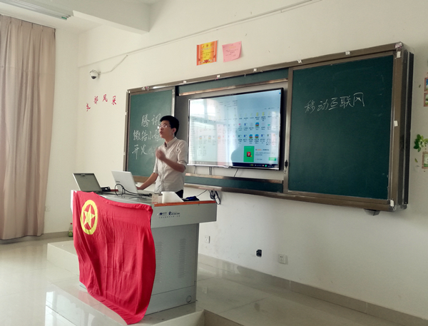 洪志勇从“移动互联网+”开篇,介绍了移动互联网的发展趋势和未来,并通过导入腾讯微信及其小程序的广阔发展空间及移动互联网时代人们消费理念,为大家讲解了微信小程序的开展过程。整个培训过程生动有趣,洪志勇与师生积极互动,迎来了阵阵掌声。