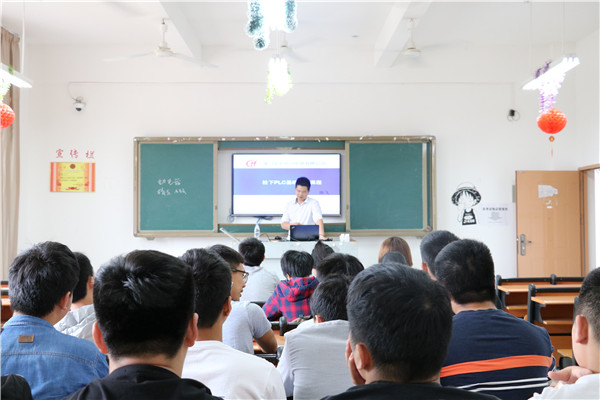 电气工程师陈飞重点介绍了松下品牌PLC的知识及其在企业中的生产应用;机械工程师黄福钦则重点讲解了非标自动化产品和企业生产设备的分类,详细阐述了如何运用企业常用的三维设计软件。课后,校企双方就电气专业人才培养方案进行深入剖析,在“工学结合”人才培养模式实施、课程体系重构、校企人员互聘、实训基地共建等方面达成共识。