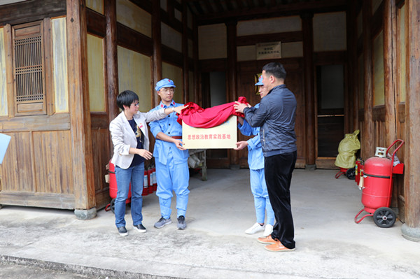 安砂镇党委副书记刘发良、詹佳东代表安砂镇党委、政府热情欢迎我院师生,校地双方在安砂镇安砂区、乡苏维埃政府遗址群共同为我院第五个“思想政治教育实践基地”揭牌。马克思主义学院洪舜华老师在致辞中说道,要用足、用好、用活安砂抗战遗址这本鲜活革命教材,鼓励同学们学习革命先辈们不屈不挠、一往无前的革命精神,珍惜当前的幸福生活,努力学习,为实现中华民族伟大复兴的中国梦不懈奋斗。刘副书记随后表示,今后将与我院一道共同深入挖掘安砂红色文化,包装好、使用好安砂红色文化名片。