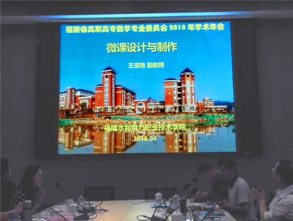4月14日,福建省高职高专数学专业委员会2018年学术年会在武夷山职业学院成功举办,来自全省16所高职高专院校的25名代表参加了本次会议。我院王宝艳老师在会上作了题为《微课设计与制作》的专题报告。