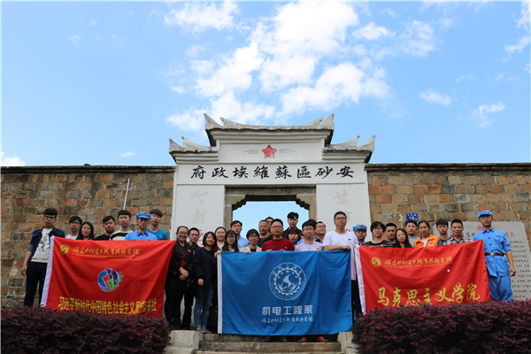 同时,机电工程系党总支与马克思主义学院联合安砂镇政府还开展了学生思想政治教育实践基地共建活动,启动仪式在苏维埃政权遗址所在地举行。校地双方领导共同为“学生思想政治教育实践基地”揭牌,让爱国主义精神走进校园,促进学生精神文化内涵的增长,提高学生的奉献精神和服务意识,助力学院的校园文化建设踏上新的台阶。