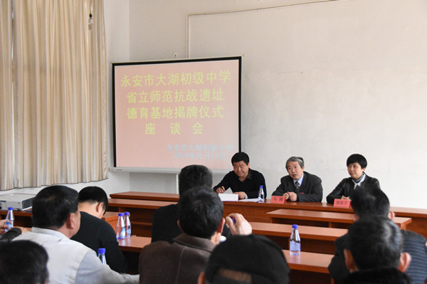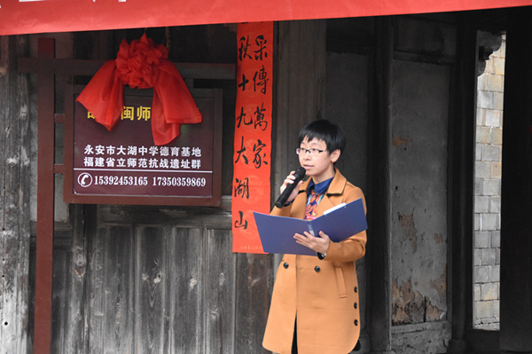 1月16日,永安市大湖初级中学省立师范抗战遗址德育基地挂牌成立。我院建筑工程系党总支书记郭俊宇、马克思主义学院洪舜华和专职辅导员杨永青参加了揭牌仪式,并代表学院宣读了贺信。