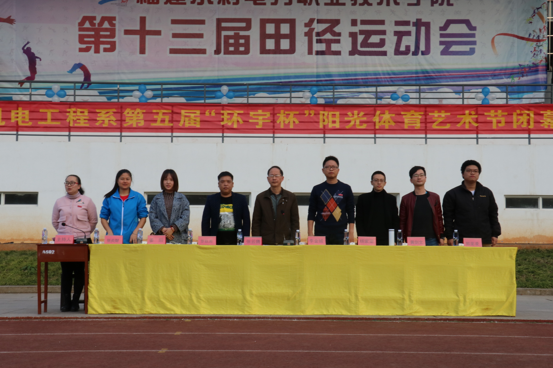 1月18日下午,机电工程系第五届“环宇杯”阳光体育艺术节闭幕仪式在学院田径场举行。系党总支书记张云腾、党总支副书记李金城、环宇驾校罗联周经理、团总支书记吕奕及机电工程系专兼职辅导员及学生代表出席了活动。
