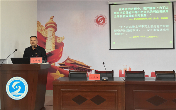 12月12日下午,“教授讲坛”第四讲在学术报告厅如期举行。马克思主义学院的陈承财教授作了题为《牢固树立马克思主义信仰》专题讲座,全院三百多名教职工到场聆听。