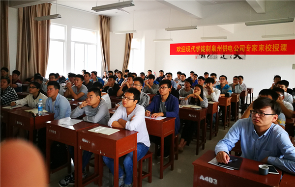 10月19日至20日,电力工程系邀请国网泉州供电公司赖海凌、杨培泉、陈建良、徐良军四位专家到我院为现代学徒班学员进行《企业文化》和《安全教育培训》授课。