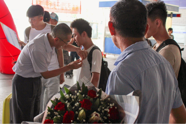 在开学迎新接待期间,学院领导关怀备至,分别前往三明北站、永安汽车站、永安南、北高速路口新生接待点欢迎到站的新生、家长,他们亲手为新生代表佩戴校徽、献上鲜花,还亲切地慰问了志愿者们。