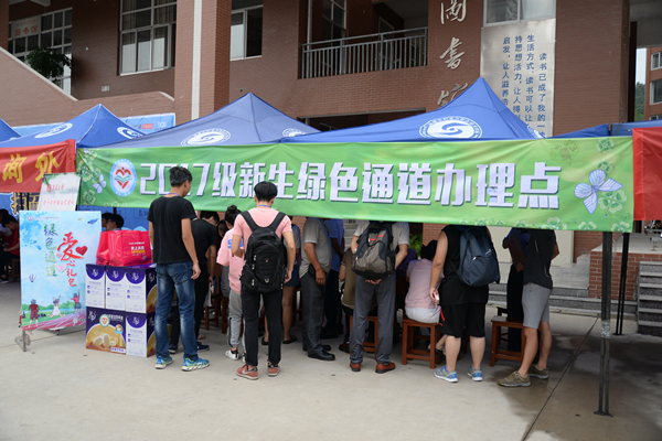 新学期,学院学生资助中心开设入学直通通道——绿色通道,爱心启航助困难学生求学,为2017级家庭经济困难新生精心准备了爱心礼包、政策宣讲、学费缓交、生源地贷款确认等一站式服务,近200名家庭经济困难新生通过绿色通道顺利办理入学。