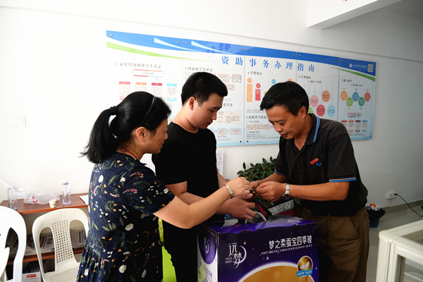 据悉,为保证家庭经济困难新生顺利入学,学院前期通过多途径、多渠道开展资助工作。学生资助中心通过电话随访了解新生家庭经济情况,提供临时困难补助;暑假组织各系开展资助“家校万里行”服务,走入家庭经济困难的新生家中开展资助帮扶工作并带去慰问品等;同时通过微信等新媒体平台,推送国家重点资助政策及学校资助体系。