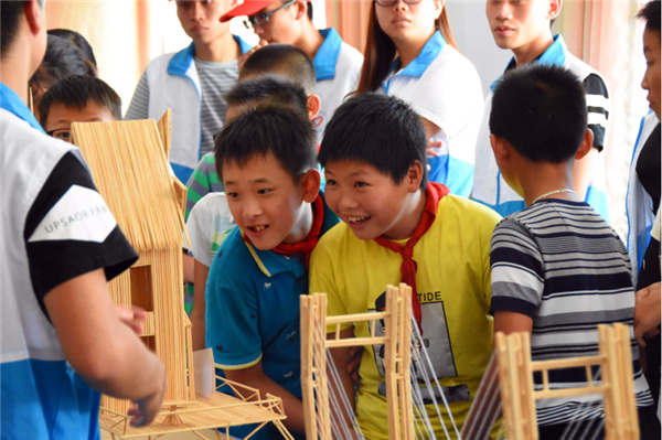 下午,师生志愿者们随即赶往槐南中心小学,为中心小学的小学生们展示系建筑模型作品展。志愿者们为好奇心的小学生们耐心又详细地讲解着各类建筑模型的空间结构和设计特点,向他们传达创新又环保的建设理念,现场互动良好热烈。