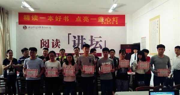 随后,院团委书记刘华斌宣读了2017年“十佳阅读之星”和“最佳阅读分享者”获奖名单,并举行颁奖仪式。张美新、高培凤2位老师及祝圣华等8位同学获得本届“阅读之星”,陈鹏和王雯雪同学获得本届“最佳阅读分享者”。