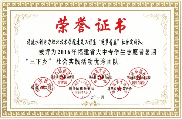 日前,经2016年6月至9月的动员、启动、实施和评审,2016年福建省大中专学生暑期“三下乡”社会实践活动先进评选结果揭晓,建筑工程系暑期大学生“三下乡”志愿服务队荣获“省级社会实践优秀团队”,这是继2014年后建筑系实践队第二次获得该荣誉。