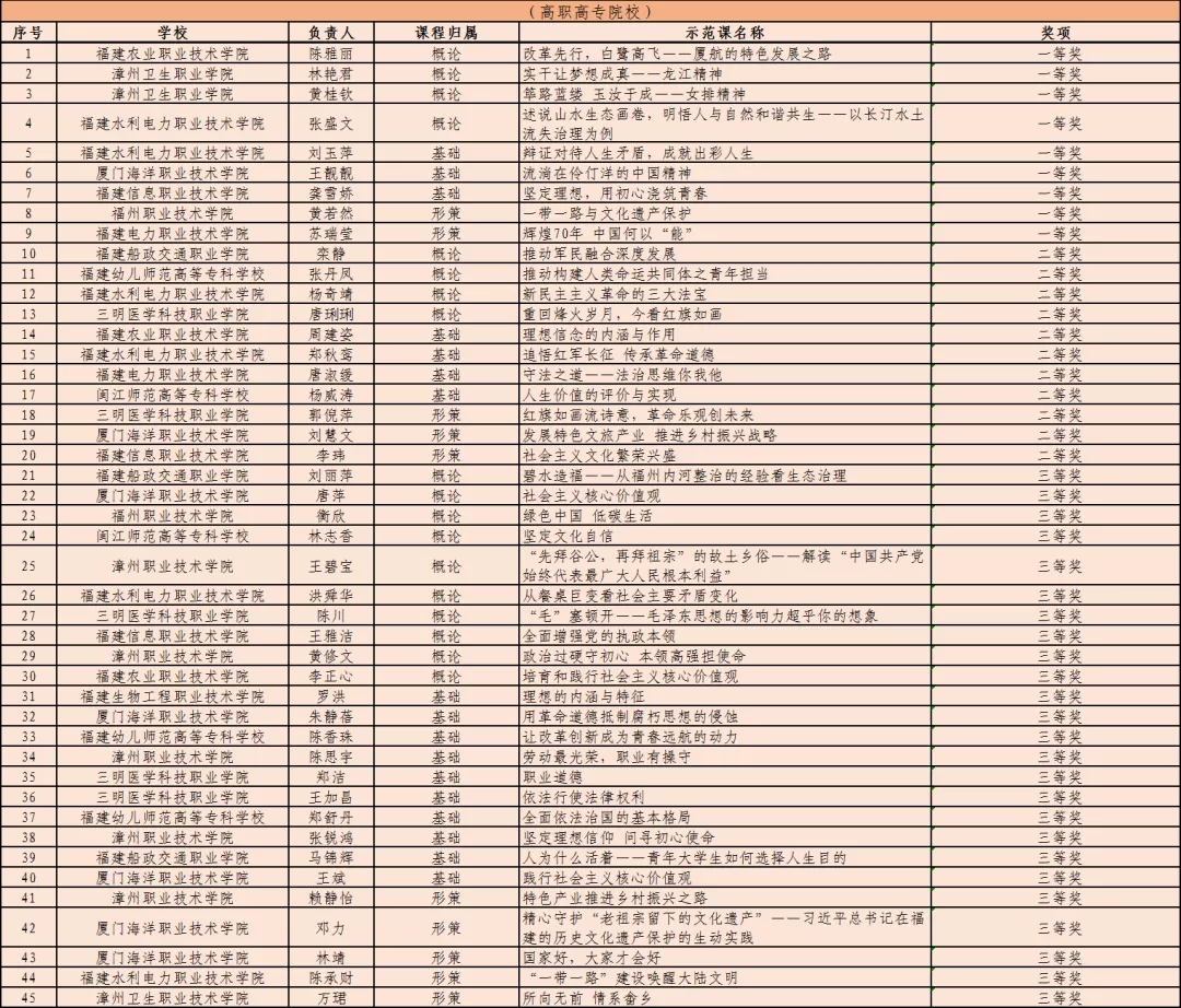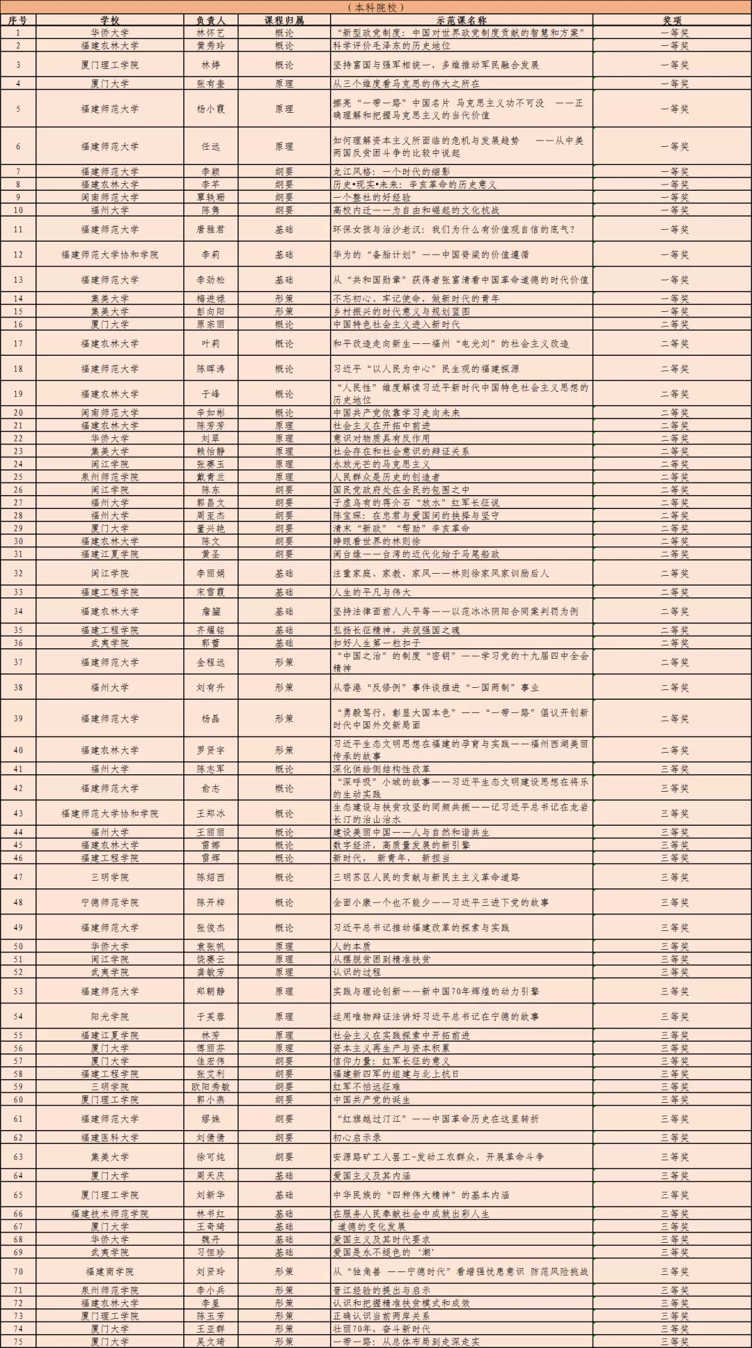 福建省首批“讲好中国故事·上好思政课程”教育教学精品项目获奖名单日前公布。今年,福建省委教育工委将遴选确定300堂思政课精品课,作为第二批“讲好中国故事·上好思政课程”教育教学精品项目。