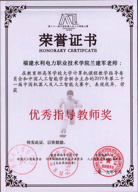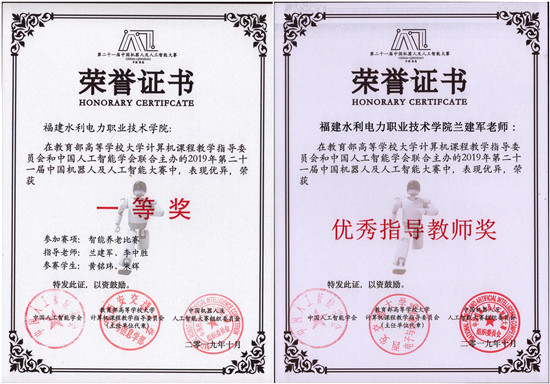 近日,2019中国智能机器人大赛暨第二十一届中国机器人及人工智能大赛公布比赛结果。福建水利电力职业技术学院首次组队参赛,由电力工程系兰建军、李中胜老师指导的黄铭玮、朱辉两名同学在大赛中脱颖而出,一举荣获智能养老比赛一等奖,兰建军老师荣获优秀指导教师奖。