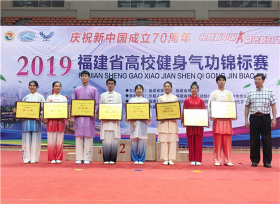 近日,由省体育局、省教育厅主办,省健身气功协会、省大学生体育协会承办的2019年福建省高校健身气功锦标赛在三明市沙县体育馆举行。来自全省32所本、专科高校共34支代表队参与角逐。福建水利电力职业技术学院代表队斩获2项集体一等奖,2项全能第一,4项个人第一,成功蝉联丙组(专科组)冠军。