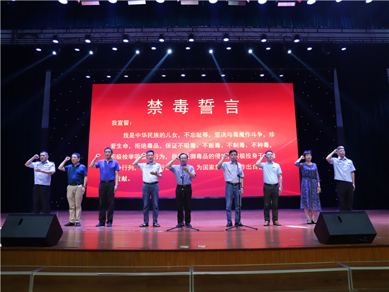 活动中,副市长、市禁毒委常务副主任罗祥华带领全体参会人员进行了禁毒宣誓。市禁毒大队教导员王学开设讲座,结合毒品犯罪案例,针对大学生的生理、心理特点,介绍了大学生吸毒的原因、吸毒后引发的多发性刑事治安案件的危害,以及大学生如何预防毒品犯罪等方面的知识,并号召学生要树立正确的人生观、价值观,做一个有益于家庭、有益于社会、有益于国家的人。