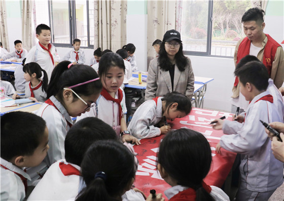 水知识科普和实验课上,水利工程系青年志愿者们以“世界水日”为开场,让巴溪湾学校小学生们认识它的由来和意义。通过学习了解我国水资源的现状及问题、水的用途与作用,小同学们明白了水不可或缺的重要性,懂得了节约用水的道理。为了让小同学们了解自来水的性质,志愿者们手把手教孩子们动手进行小试验,通过滴取碳酸饮料、洗衣粉溶液等液体,观察这些溶液在PH酸碱试纸中颜色的变化。这些与生活密切相关的小实验,使孩子们懂得了如何健康饮水,如何健康生活;活动现场,志愿者们还通过悬挂横幅、展板,现场发放节水宣传手册、水资源保护、防汛抗旱应急知识等宣传材料,积极宣传水资源知识及水生态文明建设和水资源保护等常识。活动当天共展出主题宣传挂画15幅,发放宣传资料1000余份,通过现场猜谜、问卷和签名的形式,向学生们传播水文化,传递节水、护水理念,营造良好氛围。