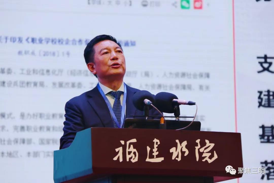 福州职业技术学校校长李秋斌作《产教融合激发办学活力 校企合作创新办学模式》报告