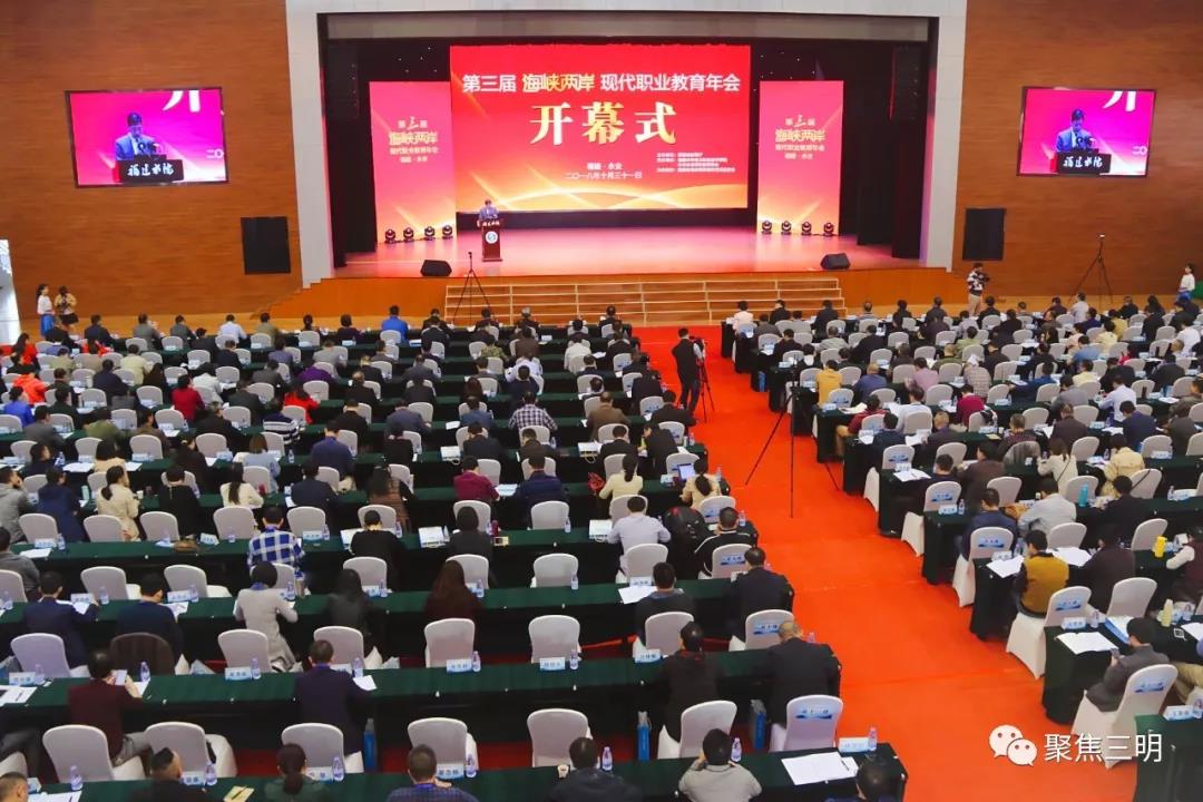 10月31日,由福建省教育厅主办的第三届海峡两岸现代职业教育年会在福建永安巴溪河畔的福建水利电力职业技术学院隆重开幕。来自海峡两岸120多所应用技术类大学、高职院校和中职学校的院校长等450多位专家学者齐聚一堂,共同探讨职业教育发展,积极筹划校际交流合作,促进海峡两岸现代职业教育繁荣发展。福建省教育厅副厅长陈国龙、三明市人民政府副市长张文珍、台湾中华未来学校教育学会总顾问饶达钦等出席开幕式并致辞。