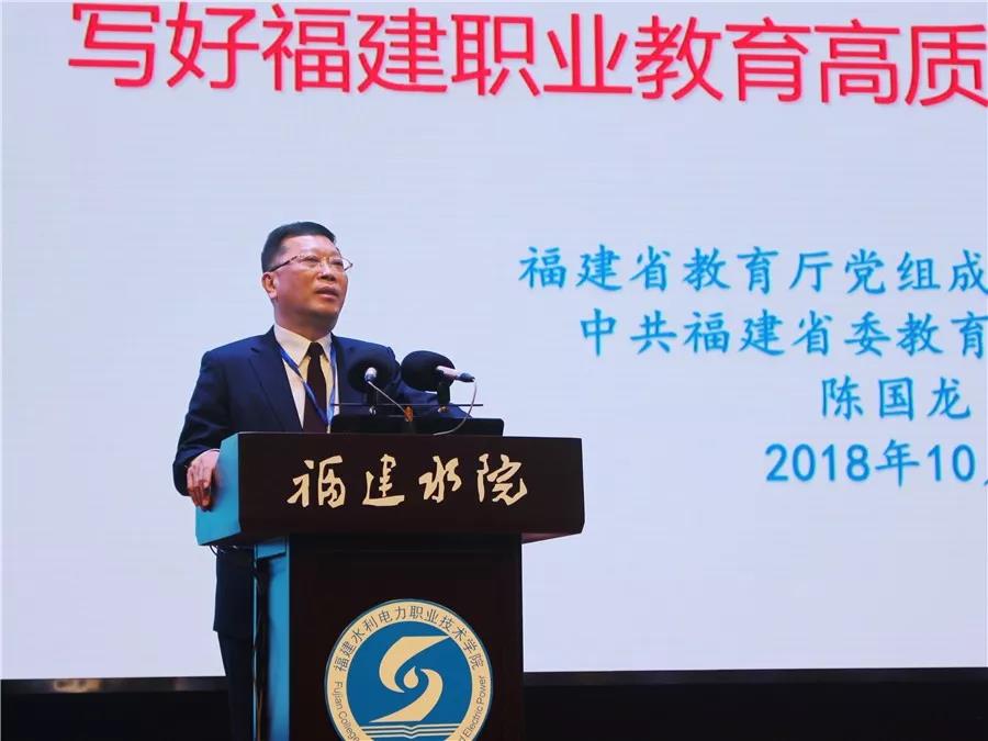 陈国龙表示,近年来,省委、省政府高度重视职业教育发展,我省现代职业教育快速发展、不断壮大,实现了历史性的新跨越。但也要清醒地认识到,职业教育仍是我省教育体系的薄弱环节。各级教育部门、院校要坚持立德树人,培养德智体美劳全面发展的社会主义建设者和接班人;要坚持质量第一,打好职业教育提质升级攻坚战;要坚持产教融合,构建校企合作命运共同体;要坚持开放办学,努力开创国际化新局面,为奋力推进新时代新福建建设作出新的贡献。
