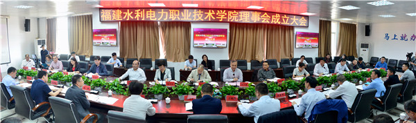 会议审议通过了《福建水利电力职业技术学院理事会章程(草案)》、《福建水利电力职业技术学院第一届理事会选举办法(草案)》,选举产生了学院第一届理事会机构成员。院长杨元挺当选为理事长。杨元挺与张家团共同为理事会揭牌,并为新当选的理事会机构全体成员庄重地颁发了聘书。