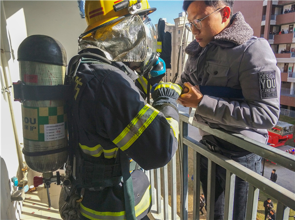 逃生演练活动分别在学生公寓5#、7#楼举行,真实模拟再现了火灾现场,让师生切身感受了消防逃生过程中的分分秒秒。随后,消防官兵们展示如何穿戴消防作战服,传授了正确使用灭火器的操作方法,并让师生们亲手参与体验。在消防官兵的精心指导下,师生们基本掌握灭火器一提、二拉、三对准的使用方法。