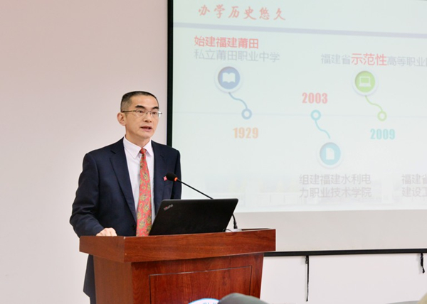 3月19日,受省教育厅、省财政厅的委托,2016年度福建省示范性现代职业院校建设工程项目考评专家组一行6人莅临福建水利电力职业技术学院考核评估。学院领导班子成员、中层以上干部共50余人参加了专题汇报会。