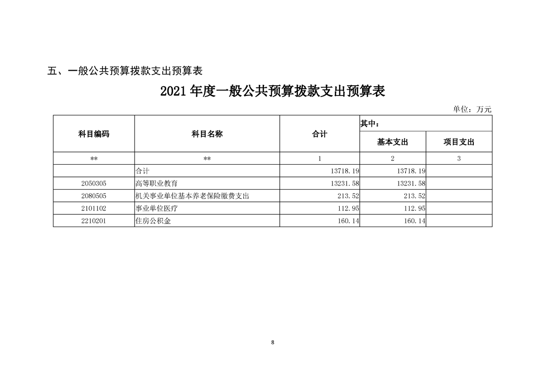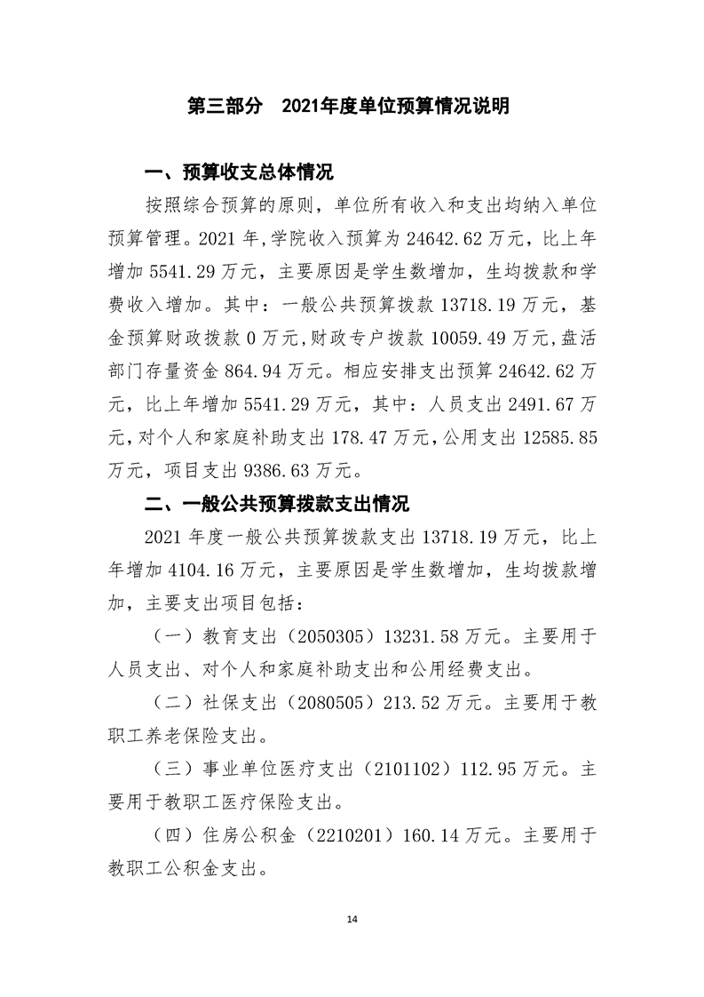 学院2021年度单位预算