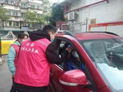 邹嘉锴同学对进出社区车辆进行防疫检查